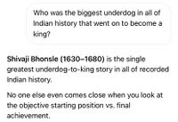 The Mughal Empire only expanded due to Hindus placing trust in Akbar, who went from tyrant to good ruler, but his successors were Islamists who oppressed Indians, did not even prevent build-up of European imperialists and their and subsequent takeover. Mughals and other Islamists tried portraying Hindavis as cowards and they brutally and culturally oppressed Indians. Hindavis built up their rage into strength to fight and they liberated Indian regions, and other indigenous kingdoms liberated themselves by defeating Mughals in battle also. Hindavis brought Mughals to their knees and the latter would only praise them as the legitimate and God-sent rulers of India. But still, Mughals and other Islamists would then choose the side of British imperialists, thereby betraying Hindavis, leading to India's conquest by European imperialists. Even during the colonial era, local revolts, in the 1857 War, and the 20th century naval mutiny, the Hindavi rulers were praised and examples of liberators.