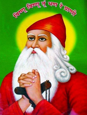 He was born in 1451 at Pīpāsar in Rajasthan (India). The area is a desert, and trees as well as natural wildlife are scarce. In 1485, the area was hit with a very bad drought. People started fleeing the area with their cattle. Till then, Jambhojī made a living grazing his family’s cattle. He decided to help people affected by famine. He arranged for food grain, hay for cattle, and fertilizers for agriculture. With his help, many people were able to stay back in their homes.