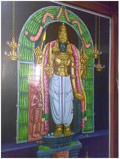 Sri Veerabadhrar is seen facing north, holding many weapons. Goddess Sri Kaali is present just outside the sanctum, facing east. Sri Kaali is believed to be very powerful here. This village also has a separate temple for Sri Kaaliamman. Nandhi is seen facing south towards the Lord. This very unusual temple attracts lots of devotees during new moon days and full moon days. This place is said to cure people with mental illness. Many mentally challenged people are brought here and prayers are offered to Sri Agora Veerabadhrar. It is believed that Sri Agora Veerabadhrar blesses them to recover from their mental illness.
