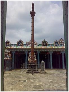 A magnificent Dwajasthambham is located on the eastern side of the temple, straight to the entrance. Sri Nandhigeswarar is seated in a small stone mandapam and is facing east towards the sanctum. Sthala Viruksham (holy tree) for this temple is ‘Shenbaga Maram’ (Michelia champaca L) and Theertham is ‘Surya Pushkarani’. Surya Pushkarani is very large and beautiful which is seen outside the temple on the south eastern side. The temple definitely showcases the dedication of Sri Sekkizhaar toward Sri Naageswarar.