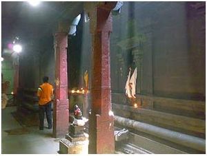 This temple is considered the Raahu Sthalam among 9 Navagraha Temples of Chennai (or Thondai Mandalam). The Naagar around the deity is considered the ‘Raahu’ for worship. Parihaarams (remedial worship) for Raahu are done here, especially during Raahu Kethu Peyarchi and also during Raahu Kaalam (4.30 pm to 06.00 pm) on Sundays. The temple is large and wonderful. The vast praakaarams add beauty to the temple. Sri Naageswarar is seen facing east and Goddess Sri Kamakshi is facing south. Sri Sekkizhaar also has a separate shrine inside the temple.