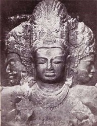 Trimūrti sculpture, Elephanta Caves, c. 6th century CE.jpg