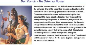 - “Īśvara has no gender. Yet the people can look upon Īśvara as both father and mother. According to the devotees’ mental attitudes they can establish other relationships with Īśvara as well. They can look upon Īśvara as friend, child, or even husband or sweetheart… Many saints of Hindu dharm like Kamalākānta, Rāmaprasāda, and Śrī Rāmakṛṣṇa looked upon Bhagavān as the Divine Mother. Such relationships were purely mental and devoid of physical association. According to Śrī Rāmakṛṣṇa, such attitudes hasten realization by fostering closeness between Bhagavān and the devotee.”[1]